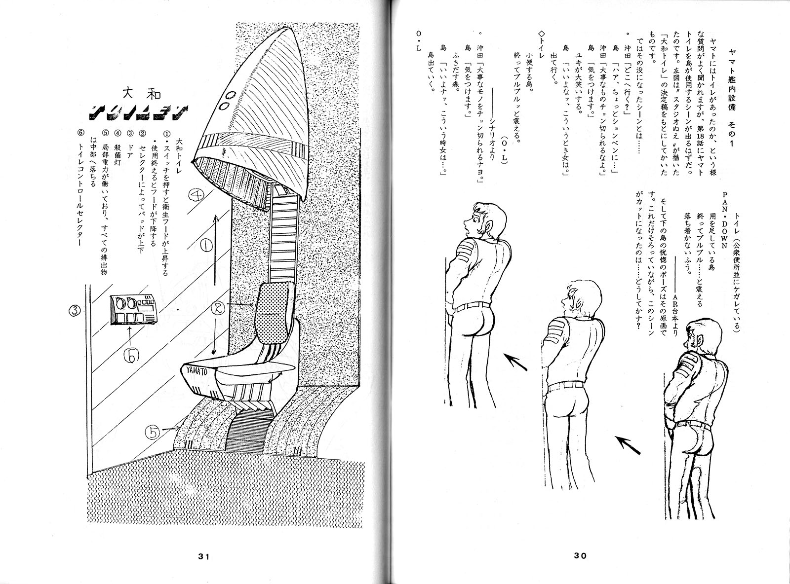 As for “why a Space Toilet?” there’s a shot in the Orion in 2001: A Space Odyssey called the “Zero Gravity Toilet.” It was famous because the explanation panel was reproduced in a making-of book. I think it was also translated in the SF visual doujinshi Monolith. They probably wanted to pay homage to that. Back then, 2001 was a “phantom film” only known to those who saw it during its 1968 release. Even among the founding members of Studio Nue, it was highly revered.