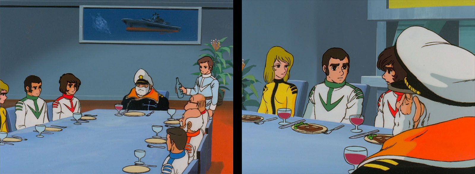 This gathering was held after Captain Okita proposed, “Let’s have some wine and a meal together tonight.” I believe this scene is one of the most important in Yamato.