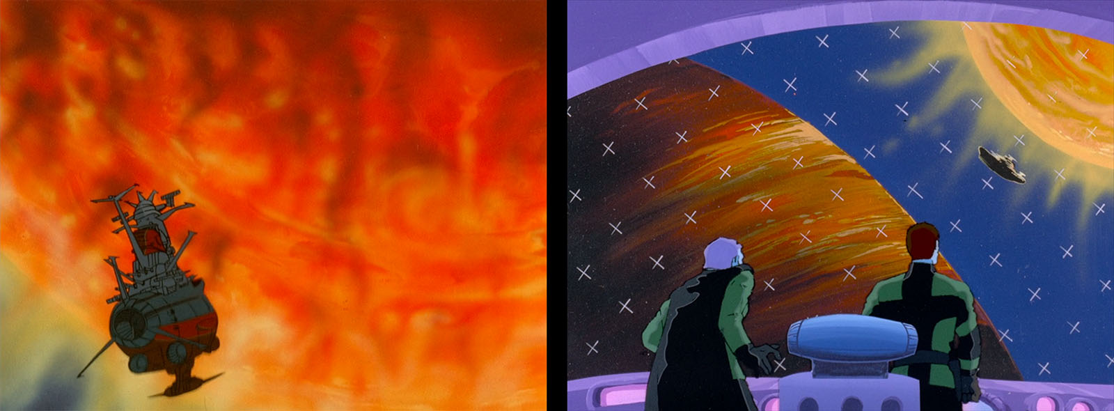 They ended up reusing the red Earth background drawn for this scene in new shots for the theatrical version. That’s why Yamato in the theatrical version returns to an “inverted Earth.” (Laughs)