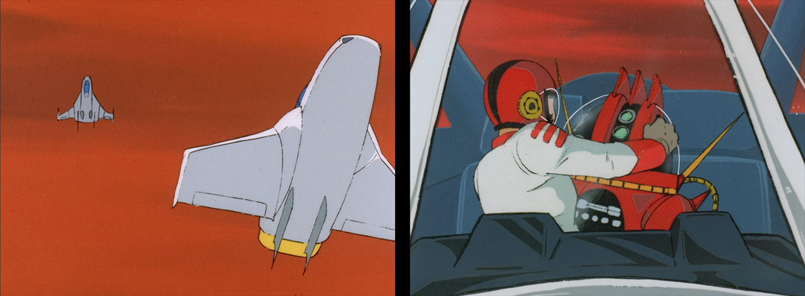 Episode 19 was storyboarded by Noboru Ishiguro himself. Having graduated from Nihon University’s College of Art, Film Department, his storyboards are highly cinematic. Especially the shot where Aihara, clinging to the relay satellite, suddenly turns around to find nothing around him…just space. That shot composition is incredible.