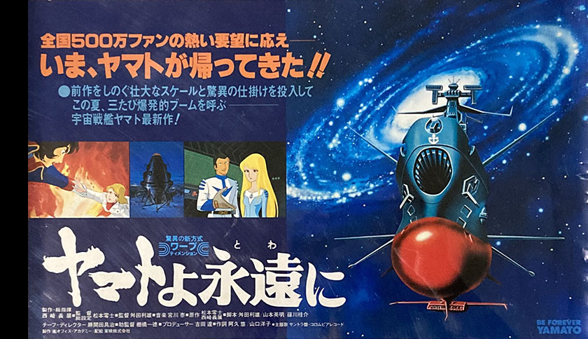 This was the third film in the series, focusing on the battle with the Dark Nebula, which appeared in the TV special The New Voyage in 1979. In the second film, many of the main characters died, and Yamato was supposed to share the fate of the White Comet, but the second TV series, which aired from October 14, 1978 to April 7, 1979, kept the concept of the film, with the main cast surviving and Yamato not self-destructing. Later films were an extension of that TV series. The attractive characters and suspense of the plot made Be Forever the fifth highest grossing Japanese film of all time, a hit with box office revenue of ¥1.35 billion.