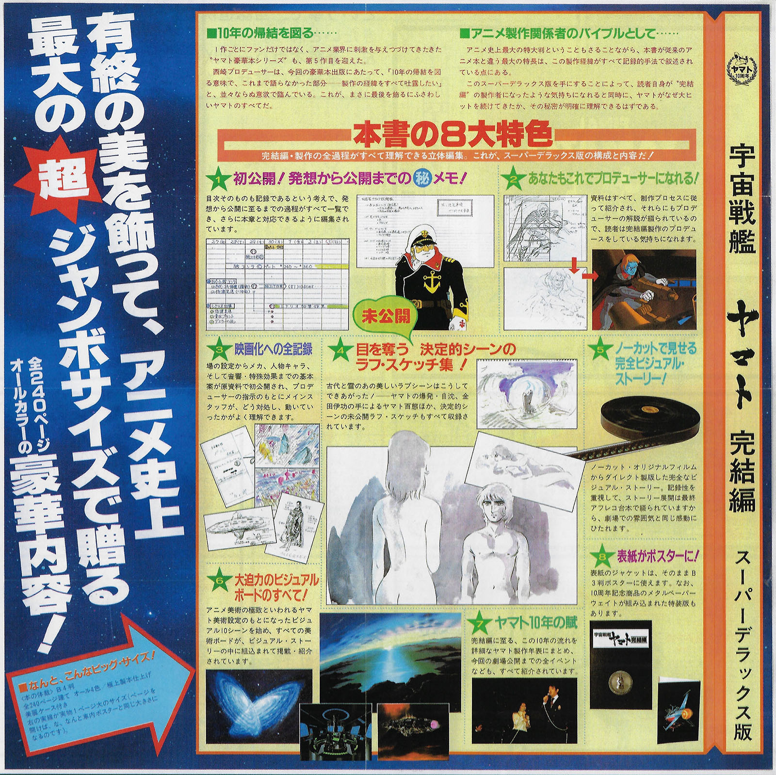 From publishing giant Shogakukan did the Lord’s work with this thick treasure trove (over 400 pages) summarizing ALL of the anime produced from March 1982 to March 1983. That’s every episode of every TV series and ever film that played in theaters. Since Final Yamato was part of that, it received a 2-page spread (shown below) and a brief explainer (above right).