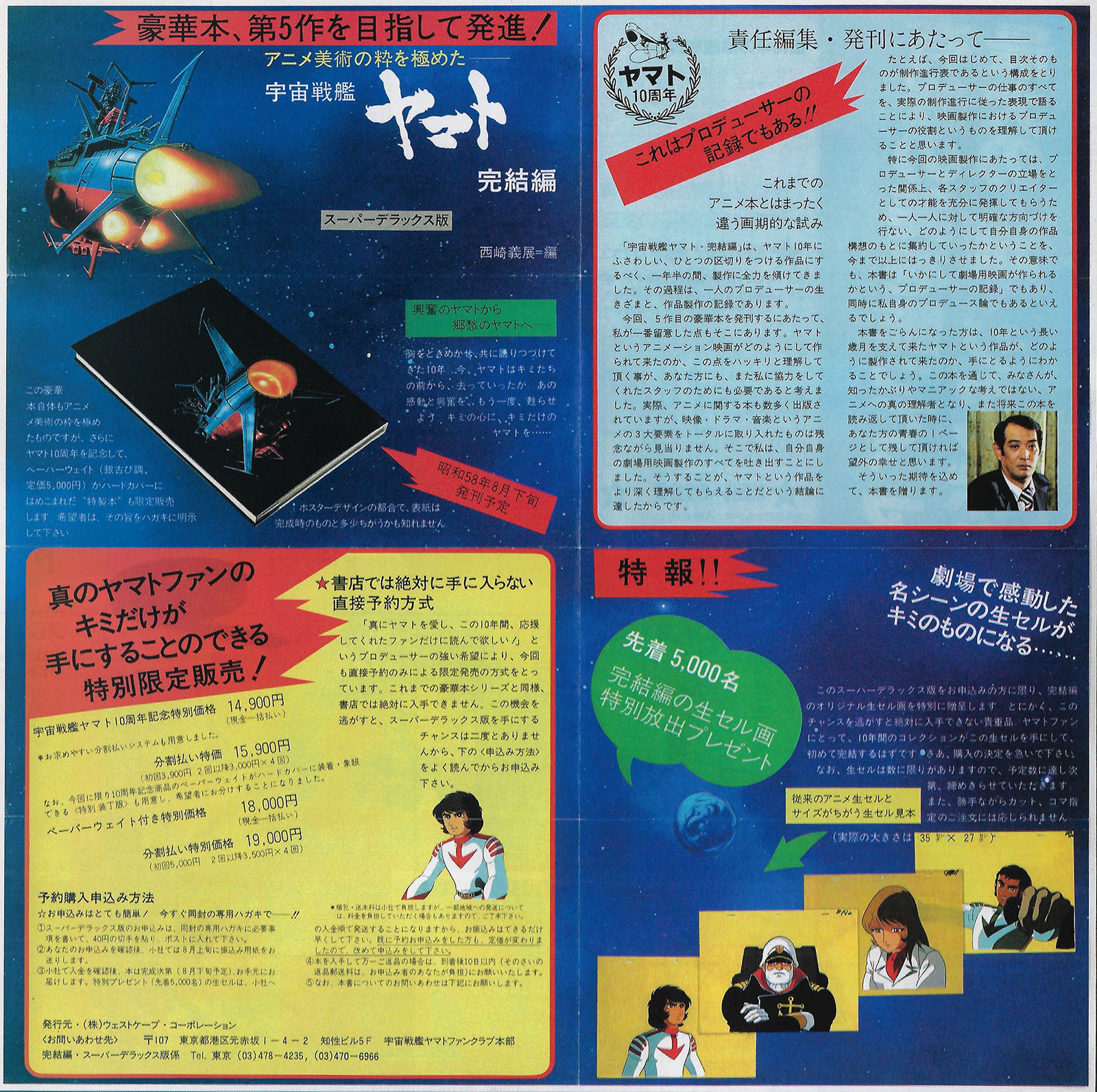 Flyers for the book/cassette combo. The one at right promotes the Final Yamato hardcover book at the top and the book/cassette combo at the bottom.