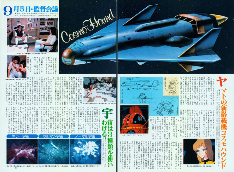 Specifically, in this meeting direction is given for the brightness or darkness of each scene. In addition, they also make decisions about the designs that are necessary for the animation. For example, the Cosmo Hound seems to be about twice the size of the Cosmo Tiger, but it must be decided from what part of Yamato it will launch. Or the size of a Bolar battleship must be determined, based on whether or not it should be larger than Yamato. This is the sort of subject that might be on the agenda.