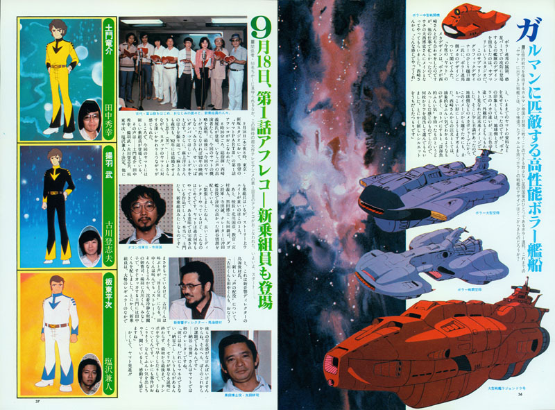 Talking about the voices of the “new cast,” he said, “Both Furukawa and Tanaka have the same taste. But when Mr. Furukawa cries out, his voice goes HIGH, and when Tanaka cries out, his voice is STRAIGHT. Furukawa’s character Ageha [Flash], is the son of a noble family, and has a self-posessed calm. Mr. Tanaka’s character Domon [Jason] is angry about having been recently orphaned. Anyway, the members of the new crew need to have presence, since there will be a large number of regulars. That area is going to be a challenge in the future.”