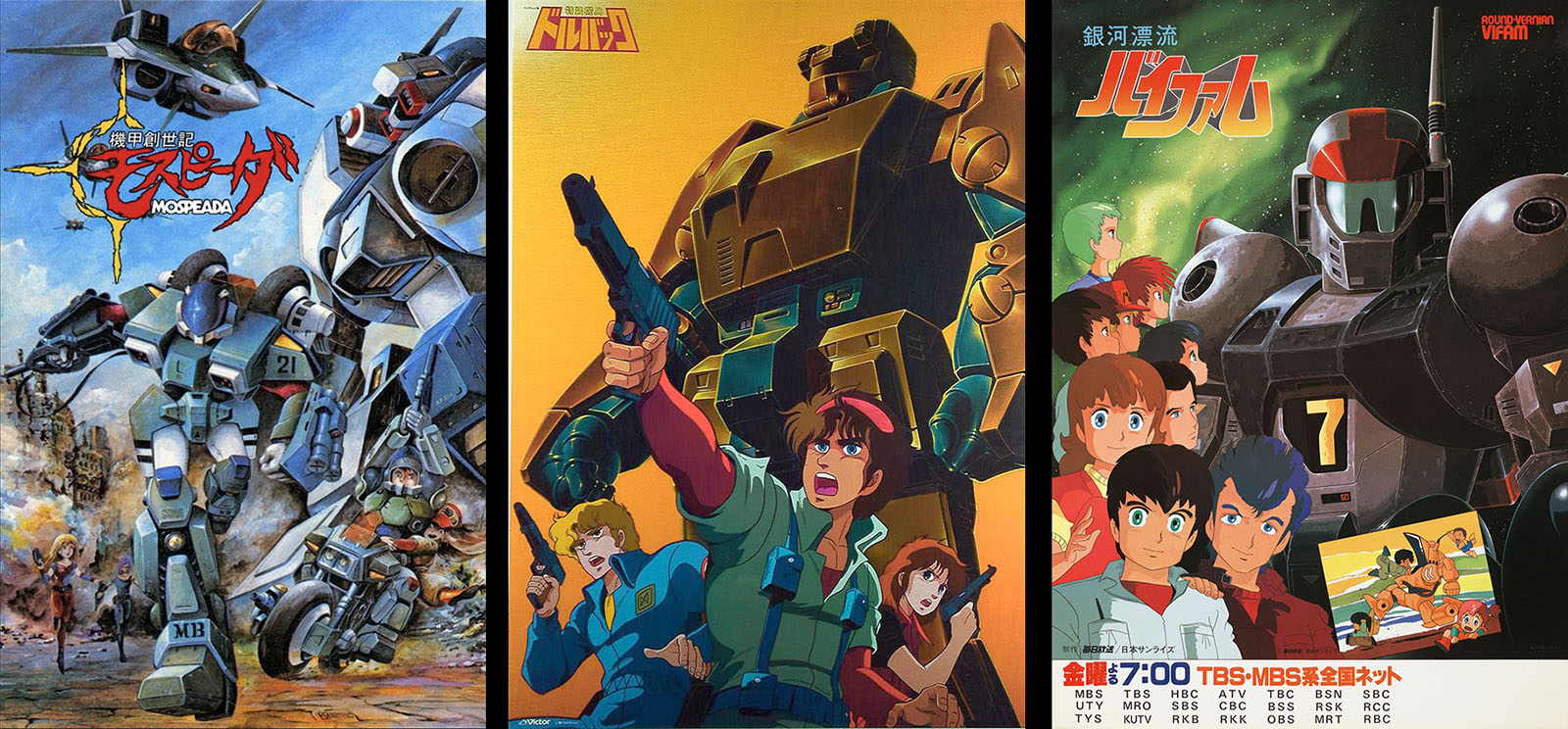 Three new SF anime series debuted on TV in October: Genesis Climber Mospeada on October 2, Special Armored Battalion Dorvack on October 7, and Galaxy Drifter Vifam on October 21. Click on each title for more info (a LOT more in the case of Mospeada and Vifam, which happen to be two of this editor’s favorites).