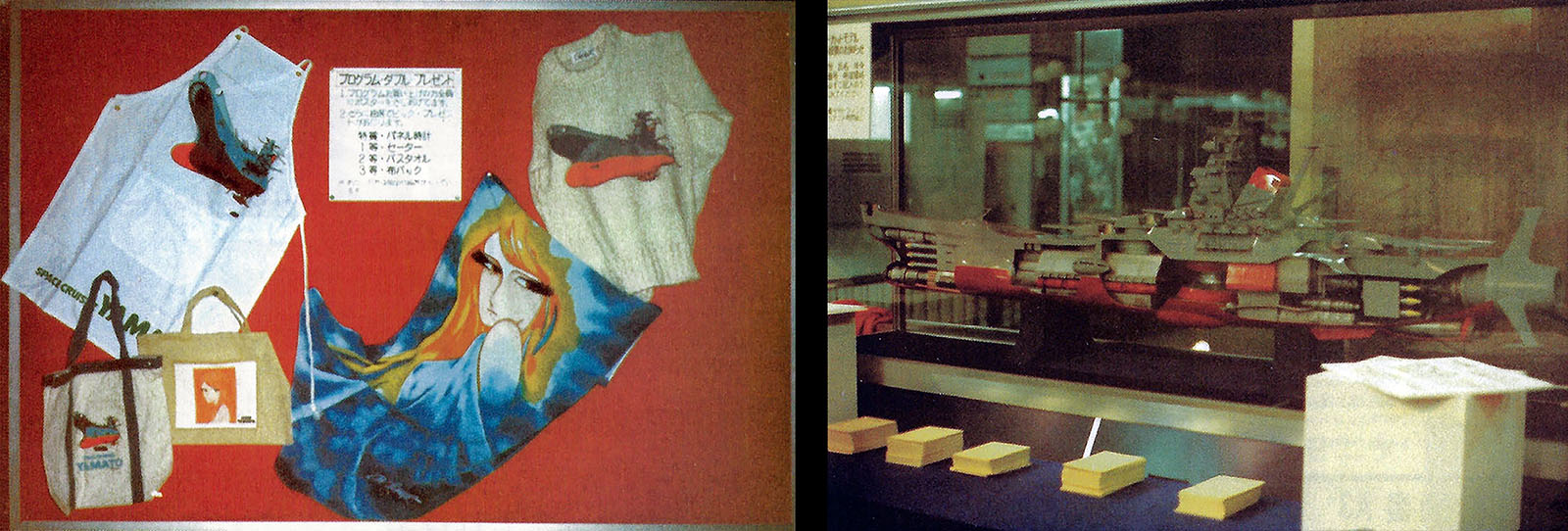 The color image (above right) was a page from issue 35 of the Yamato Fan Club magazine, promoting the same event with essentially the same text. It pictured some products that would be available, a few of which went all the way back to 1977.