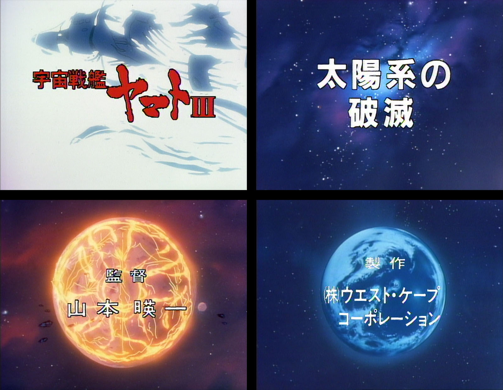 If there could be just one unsung note left in the Yamato fugue, this was it: a compilation for Yamato III to match one made years earlier for Yamato 2. Destruction of the Solar System (which reused the title from Episode 1) ran 93 minutes and was broadcast on Nippon TV just before the end of the year. Like the Yamato 2 compilation, the editing was supervised by scriptwriter Eiichi Yamamoto.