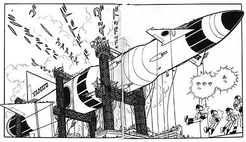 The picture story of New Battleship Yamato appeared in 1961, the same year Leiji Matsumoto created the Lightning Ozma manga, two years earlier than the manga version of New Battleship Yamato. (Panel from Ozma shown at right: a rocketship named Yamato.)