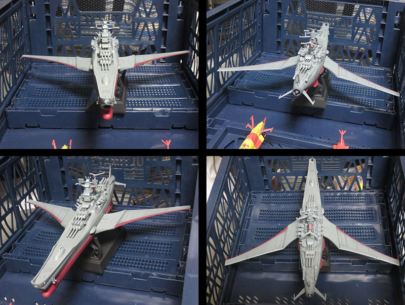 Modeler Osamu Horikawa produced a bat-winged Yamato based on the newly-rediscovered rejected design, using the original Bandai 1/1000 kit.