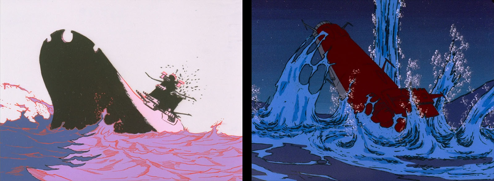 The scene where Yamato sinks beneath the icy waters.