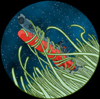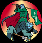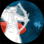 This image was suggested by Ande Lyon, who responded to my request for fan authors to contribute. Ande writes Star Blazers fanfic under the name “Wicked Good Grrrl” at the Visions website. She explains: “this was inspired by the encyclopedic Man, Myth and Magic’s article on Avatar, and by the character of Arjuna from the Hundu epic Mahabarata.” As a spectral archer, Captain Avatar here personifies the Argo’s reflective energy being used against Desslok’s final attack in Series 1. Ande’s work can be found at here.