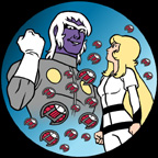 Here’s the image that Derek Wakefield asked for: Deke and Sasha. Behind them, Earth and Iscandar are united as Gamilon and Iscandar once were. Such a scenario would have happened if the Star Blazers comic book series had continued, but alas for poor Deke, he never had the chance to embrace his true love in those pages.