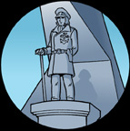 Swinging the pendulum the other way, what if a prominent character didn’t survive one of his adventures? Had Derek Wildstar followed the lead of other Captains and worn the “fatal hat” while in the “fatal chair,” he might very well have been given this Avatar-like monument on Hero’s Hill. Then again, this would probably happen even if he were to die a peaceful death. Yet another concept suggested by Star Blazers superfan Jeff Blend.