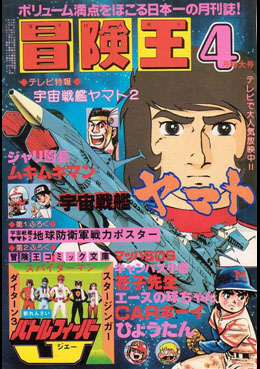 | Adventure King, Oct 1978 (published 9/3) Chapter 4, 24 pages: Yamato‘s crew has a reunion and learns of the message. Kodai reports his concerns to the EDF commander and is told that Yamato is going to be scrapped. |
