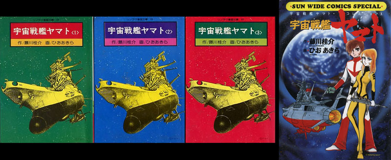 Partly out of respect for Yamato itself and partly out of the Hio manga’s nature as a curio, Asahi Sonorama has reprinted it many times, first in 1976 (with an early appearance by Studio Nue’s Yamato on the cover), then as a single-volume “wide” edition in 1993, and once more in 1999. Another publisher, Media Factory, brought it back in digest size along with the rest of Hio’s Yamato library in 2005.