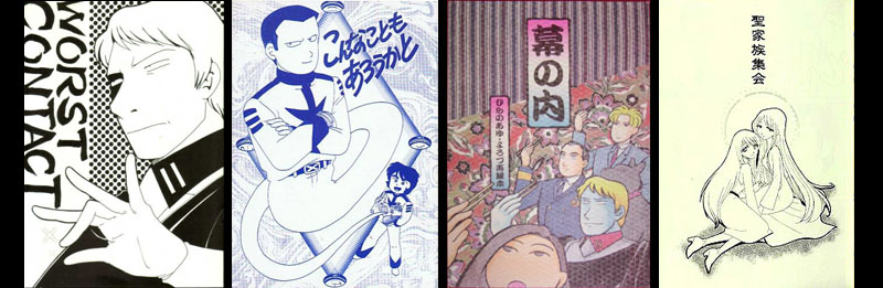 Another of Hirano’s offerings is the doujinshi shown at left, titled Otaku tachi no Yamato, which is a multi-level pun on the 2006 movie blockbuster, Otoko tachi no Yamato. [Men of Yamato].