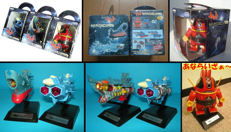 Returning to the “super-deformed” world, Banpresto delivered another Yamato and Andromeda, this time with removable sides to show off the inner workings, which bore very little resemblance to animation designs but could at least light up impressively. The Analyzer model, certainly one of the best-looking versions to date, could separate into head, chest, and leg components.