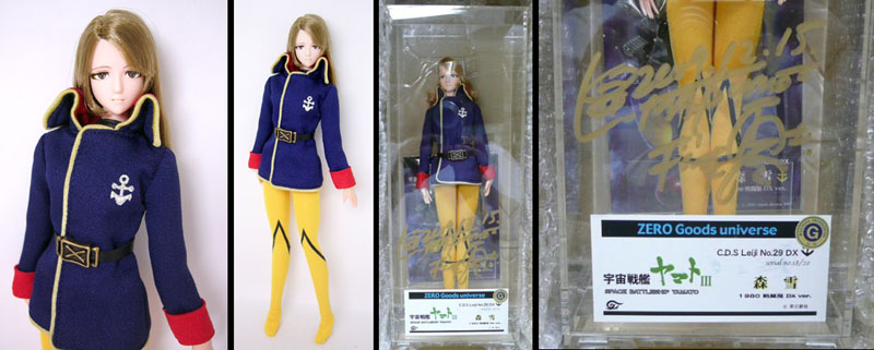 The most recent version of the Yuki doll was No. 29 (Dec. 2007), the Yamato III version; a reissue of the standard crew uniform dressed up with the navy blue peacoat. The one pictured here was signed by Leiji Matsumoto.
