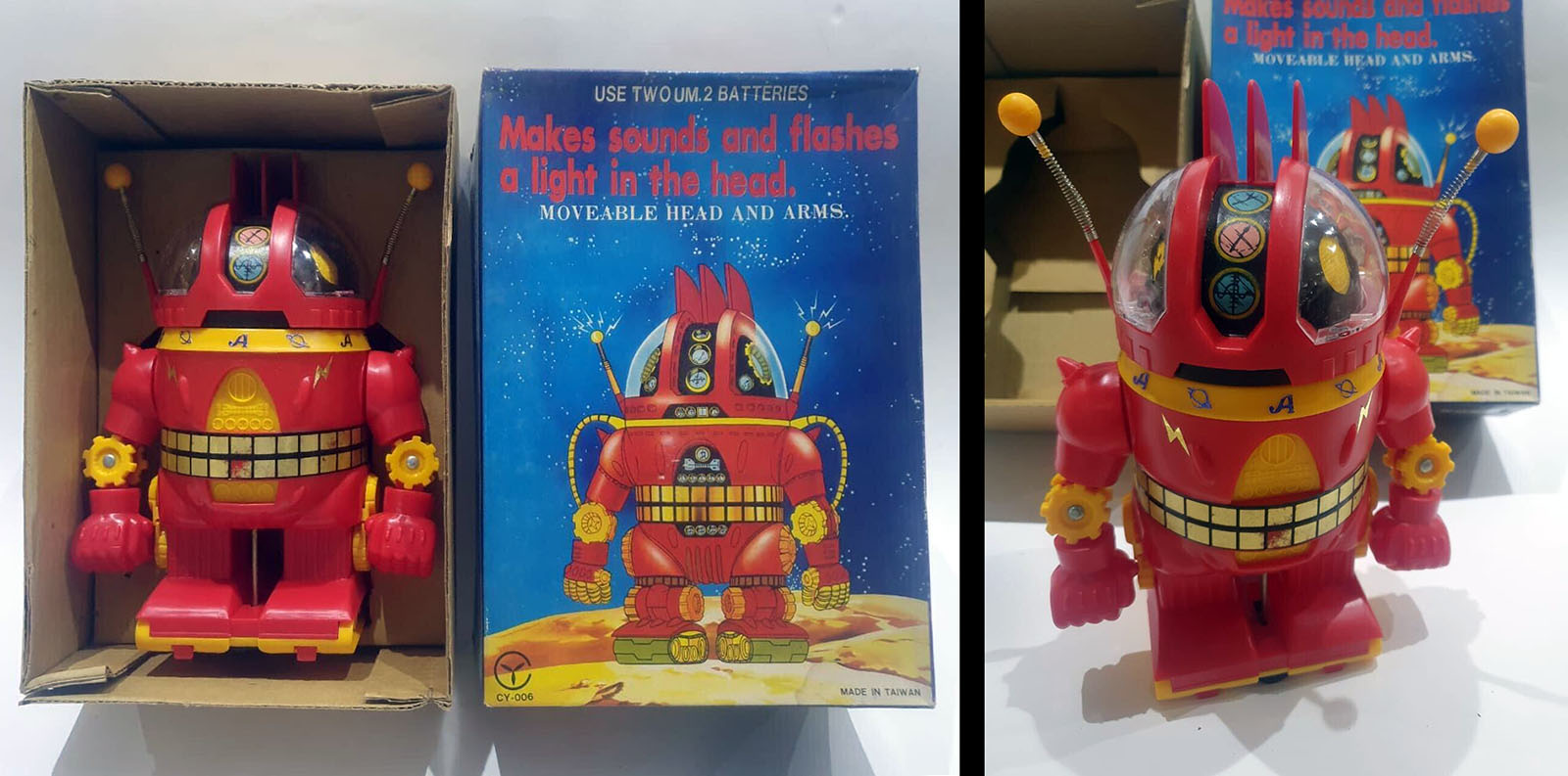 Adding to the mystery, this is one of the very few toys that found a life outside Japan back in the days when it was common to rebrand a toy’s natural origins out of existence. Hence, “Alpha Robot.”