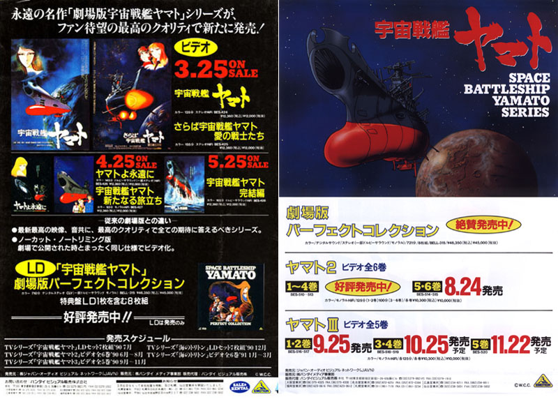 In order to give structure to this website, we’ve grouped Yamato history into two big chunks: the production years when everything was being made and the legacy years that followed. The transition point was in 1983, in which was the saga arrived on home video at exactly the same time its finale was running in theatres. In the time since then, Yamato has been released many times over in practically every format. A review of its complete video history gives us an ideal scope through which we can view the evolution of an entire medium.