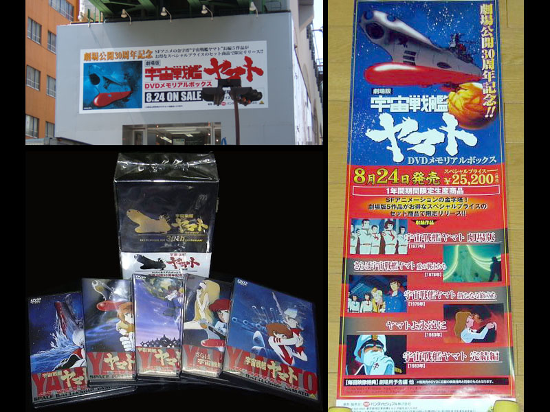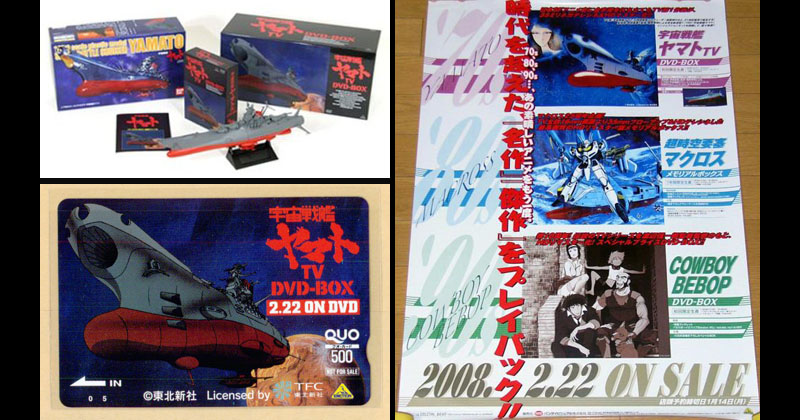Working in cooperation with pachinko game manufacturer Sankyo and an anime production company called Venture Soft, Leiji Matsumoto created a completely new series called Dai-Yamato Zero Go (above center) that ran for 5 episodes and spawned a mini-flood of tie-in merchandise. Fuji launched another pachinko game in late 2007 based on the original Yamato TV series and released a promotional DVD (above right) to support it.