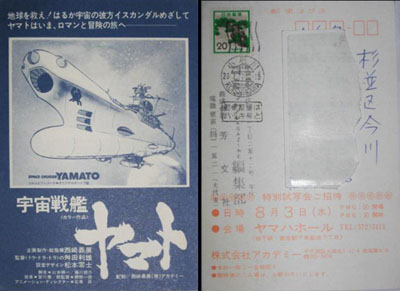 The news that a full-length Yamato movie existed was broken in the June 1977 issue of a pop-culture magazine called OUT (which was actually on newsstands in April). OUT’s editor had made contact with a private fan club called Yamato Association, and worked closely with them to produce this landmark issue. It was the first time Yamato had earned its own cover story, backed up by a tremendous outpouring of creativity inside: 60 pages of interviews, story guides, a glossary called the “Encyclopedia Yamatonica” and more. (Learn all about OUT magazine and see its pivotal coverage here.)
