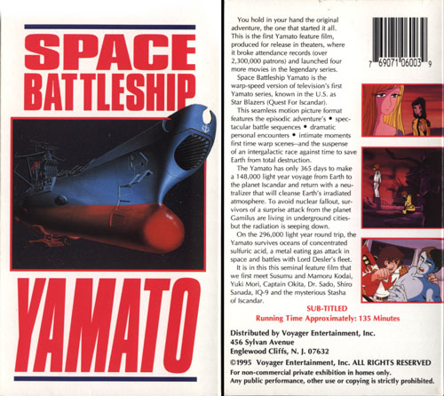 Space Battleship Yamato made its long-awaited US home video debut in September ’95, along with all of the other films and the three Star Blazers TV series.