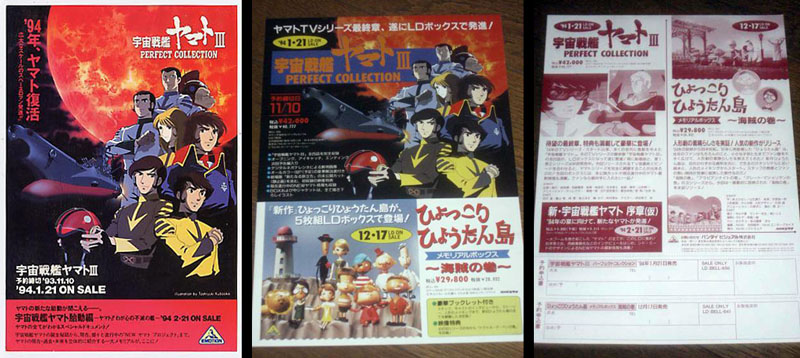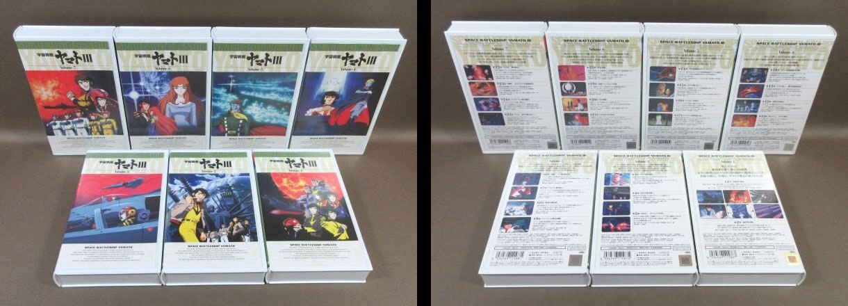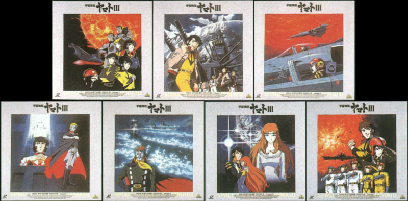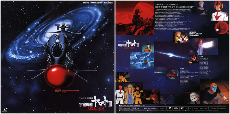 With Yamato‘s 25th anniversary approaching, Emotion threw all its muscle into a complete reissue of the entire video catalog, in which the Kubooka sleeve art for Yamato III was revived. The tapes were expanded from 5 volumes to 7 and all seven laserdiscs were now available individually rather than in a box set. This was the last time Series 3 would be released in these forms, since a completely new format was just over the horizon.