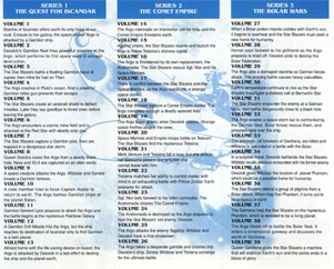 Voyager released the rest of Series 1 throughout the year 2001, culminating with a box set (shown at left) in November. This included a revised and upgraded edition of Volume 1. Custom menus and special features were developed for each disc, which provided an overview to everything seen in the series from the background of the Earth/Gamilon War all the way to the homecoming after the final episode.