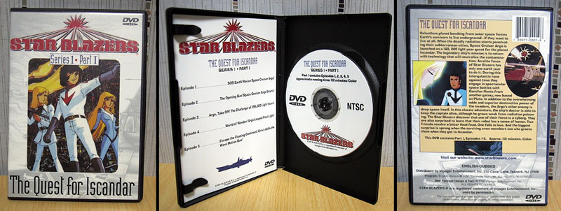 8. I recently picked up a copy of the Season 1 “box set”, and it’s quite a bit different from the one shown here. First, it’s not even a box. It’s 6 individual cases taped together with a paper slip that looks like the cover of the box set stuck to the front. Next, Parts I, and III through VI have new box art, which according to the back, was done in 2008-2010. The UPC codes are unchanged Part II still has the original box art for some reason. I contacted the ebay seller I got the set from, and they informed me that in “about 2011 or so”, Voyager International switched to just taping the cases together instead of a proper box. Additionally, there do appear to be some proper box sets with the revised artwork floating around on ebay, identifiable by their all black spines (barring Part II). I don’t believe the set is a bootleg, as all the discs are pressed (not DVD-Rs), and say “STAR BLAZERS PART X” (where X is the Part) on the inner rim, and the discs appear to my computer as having identical UUIDs as the originals. Here’s a link to some pictures: https://imgur.com/gallery/EbDK2qH