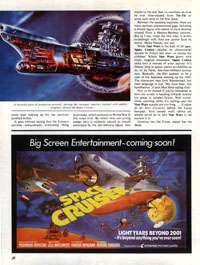 Additional proof of its cinematic presence could be found in the very first English-language magazine to write about Yamato: Starburst issue #2, a British periodical devoted to “science fantasy in television, cinema, and comix.” Published in March 1978, it featured a brief review that sliced the movie into bloody ribbons. Writer Tom Crawley, who was far more impressed with Star Wars at the time, disqualified himself early in the review with this uninformed sentence: “considering that Space Cruiser must have been in the creation stage at the same time as Star Wars…” and tied everything up in a smug little bow with: “America has the force, Japan has the farce.”