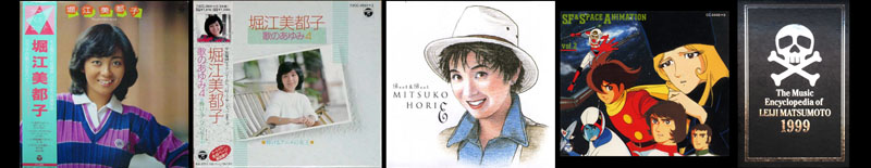 Below: Mitsuko Horie Anime Best Hit, Walking Songs, and Mitsuko Horie Best & Best; SF & Space Animation Vol. 2, Music Encyclopedia of Leiji Matsumoto 1999.