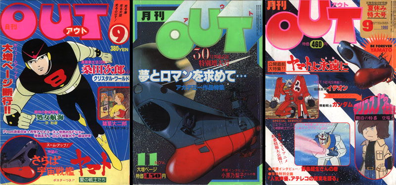 Portions of this article were translated from the May 1999 issue of Comic GON Magazine. A lively blend of anime, manga, and hobby coverage, GON was a direct descendant of OUT, and the article was a loving tribute to their spiritual father. It included a faux-OUT cover image and several pages designed to mimic the style of the original Yamato issue. Click here to view the Comic GON article in full.