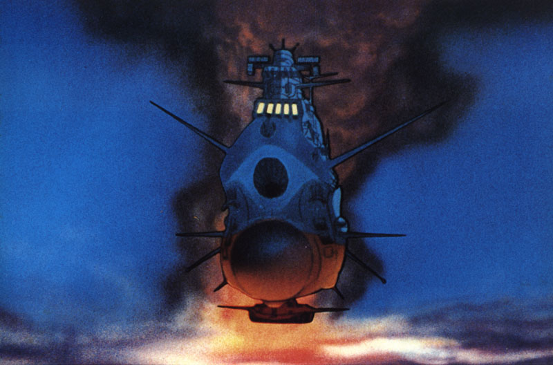 Ishiguro: I had already been thinking about things I wanted to do on an SF series. I wanted to try an optical composite, where the foreground and background move separately. You see it in the first episode when the Gamilas fleet flies toward the camera and when Okita’s ship flies toward Mars. You see it again at the end of episode 3 when Yamato flies away from the mushroom cloud.