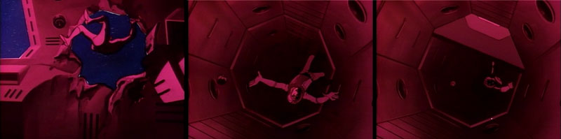 A hole gets blown in the ship, the crew gets sucked out, and in the storyboard a one guy was shown grabbing the edge of the hole, so the emergency hatch stays open. When the scene was done, I thought it would be more effective if the hatch closed right in front of his eyes. The animator was furious, saying “I drew it according to the storyboard!” So I agreed to redo it myself.