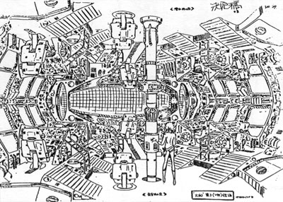 The true purpose of the third bridge is to give Yamato the attributes of a seagoing vessel in addition to being a spaceship. Naturally, it is expected that while on a voyage, Yamato might have to descend to a planet’s surface. If it had to land with that big body, what would be the most suitable place? The ground would provide too many hazards. Since Yamato was remodeled from a seagoing battleship, a liquid environment would be the most accommodating.