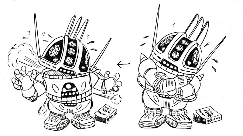 Answer: As for the size of the engine, it is correct in the scene in which Tokugawa [Orion] polishes it. Sometimes it looks bigger because the artists at Studio Nue like to draw extra details. The original design which I have obtained…shows that even this…BOOOOOM!