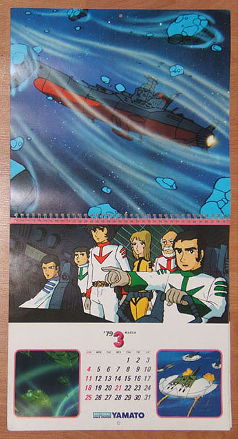 This large-format calendar scored over the previous year’s edition, loaded with stills and mecha drawings printed as big they would ever be seen. The first two pages were devoted to Space Battleship Yamato as a lead-in to the monthly calendar pages, each of which had huge mecha drawings on the opposite side.