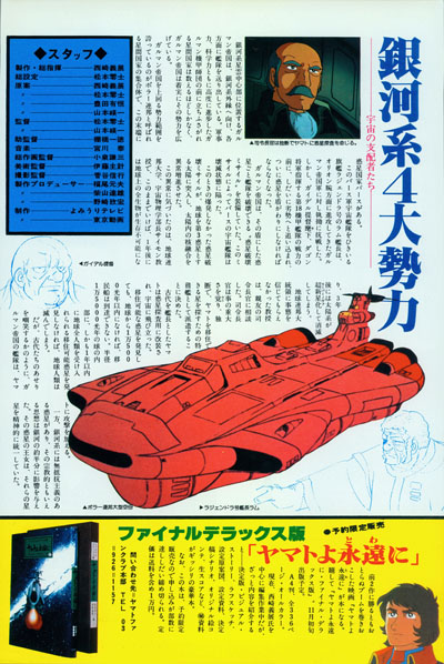 The conversation about directing a new TV series began late last year. It was formally decided in February of this year [1980], based on an idea by Mr. Nishizaki and Aritsune Toyota that ran to 200 pages. Since this is like a draft proposal, I can’t say there won’t be any changes. At the moment, the format consists of stories that will be completed over 2 or 3 episodes, and 50 episodes are planned. Since each story finishes in 2-3 episodes, it’s good to think of it as similar to the beginning of Series 1 or the Planet Telezart story from Series 2. Although it’s not possible for the special effects in the animation to look like they were made for the cinema, I intend to put a lot of creativity into the SF ideas so that a good image comes out.