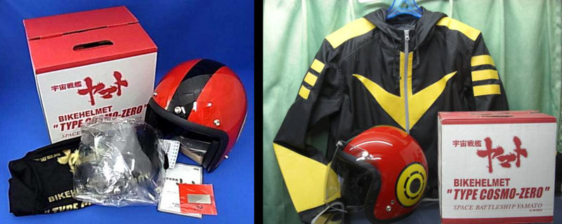 Bandai followed this a month later with the super-cool Cosmo Zero motorcycle helmet as worn by Kodai himself. It came with a cloth bag, face shield, and bonus money clip. Both this helmet and the wine set were released by Lalabit Market, Bandai’s online boutique for high-end anime products. Browse their website here. Don’t forget your drool cup. The source of the Black Tiger windbreaker (below right) is currently a mystery, but it’s definitely a perfect pairing!