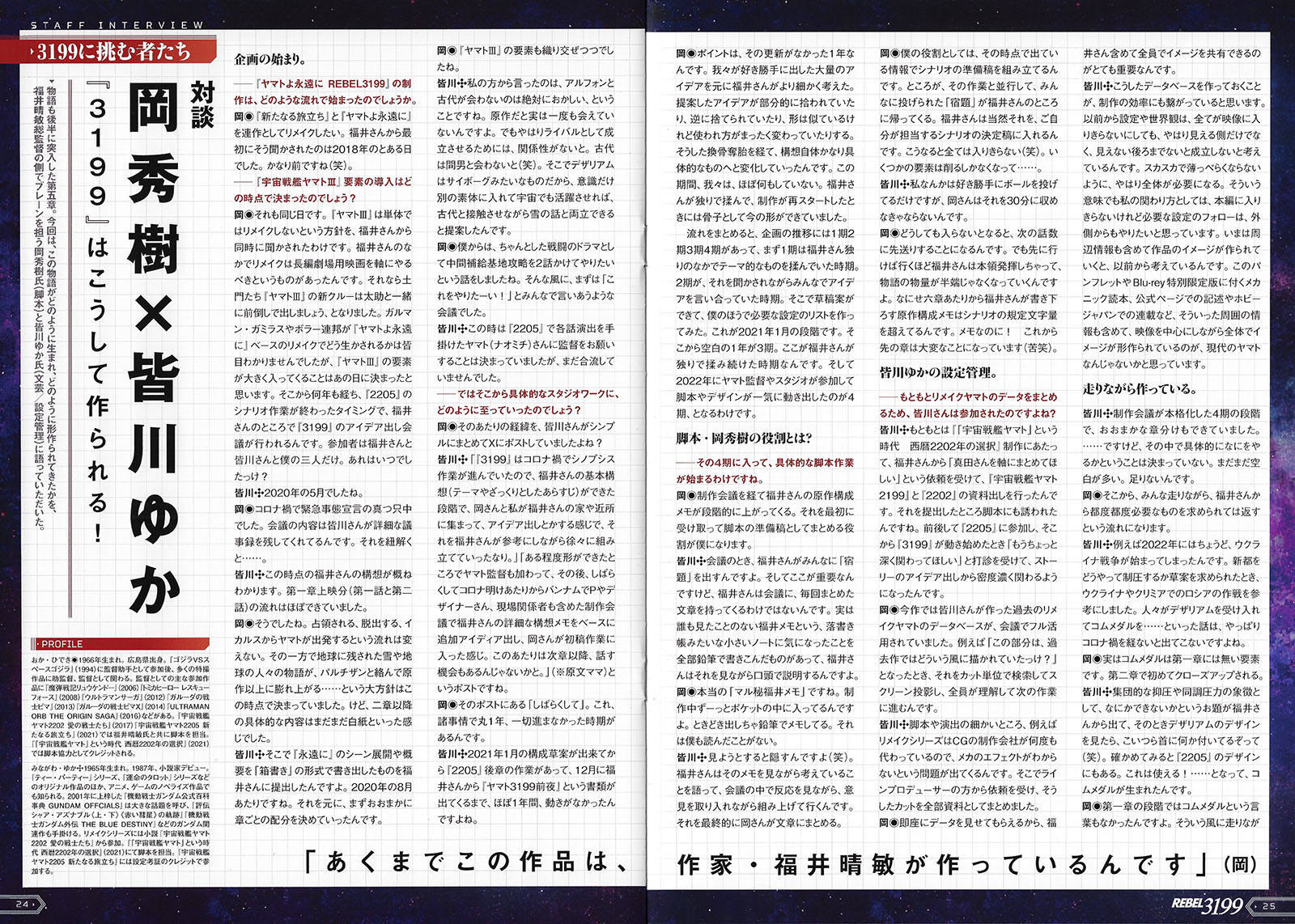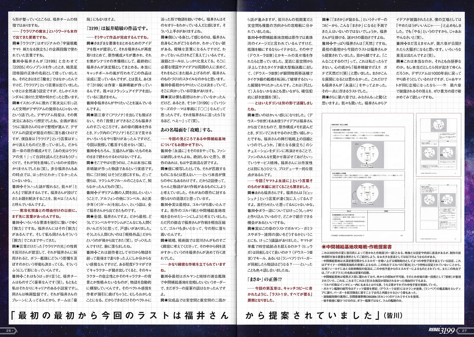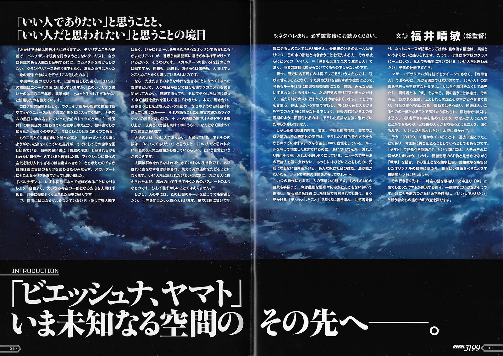 Yes, what is depicted in 3199 happened in the past, and is also something that is about to happen again right now. Everyone will have a different answer to the question of whether this is a story that should be told in Yamato. However, based on the original spirit of the story, which depicts war while disguising itself as a science-fiction story of good triumphing over evil, and which also denounces competitive society and entrance exam wars that are its breeding ground, we have trusted Space Battleship Yamato with what needs to be said now.