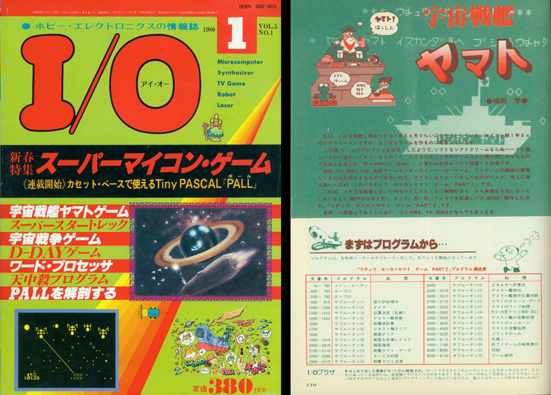 The next sign of things to come came about 18 months later when another computer hobby magazine titled I/O published code for its own Yamato game. The magazine dated back at least to 1977 and had strong SF/Fantasy leanings; other anime-based games were developed in its pages including one for Galaxy Express 999. Ironically, it would be another 12 years before an actual Yamato computer game was released, but there was no stopping the digital future.