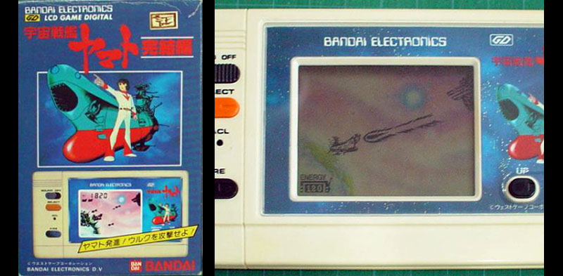 The last of the games from the production years was, coincidentally, the harbinger of everything yet to come: Bandai Electronics’ Final Yamato LCD game. The technology for this was first developed in the 1960s, then refined by Japanese electronics companies in the 70s for the first digital quartz wristwatches. From there it was an easy step to all sorts of applications, like highly-simplified hand-held video games.