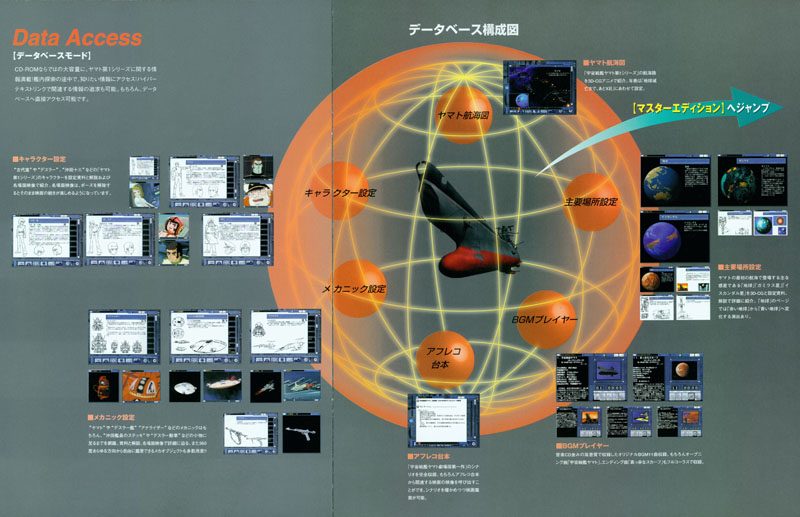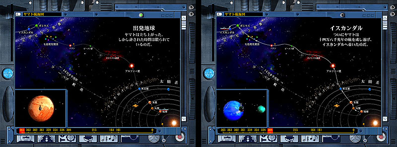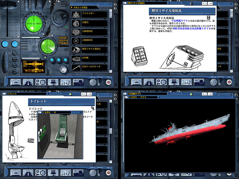 The last button is a smaller database devoted to planets; Earth, Gamilas, and Iscandar. Each brings up a rotating CG model and a few pages of art and information. That’s the entire database, which could clearly fill an hour or two.
