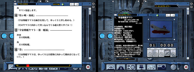 Upon loading the software into your PC or Mac, the first thing that greets you is a gorgeous CG version of the original opening title, complete with the original broadcast recording of the Yamato theme. Following that is a 3-2-1 Wave-Motion-Gun-style countdown with rotating still images (different ones each time). This is followed by the opening sequence from the show itself, explaining what happened to the Earth and the hopeful message from Iscandar. And then, before you know it…