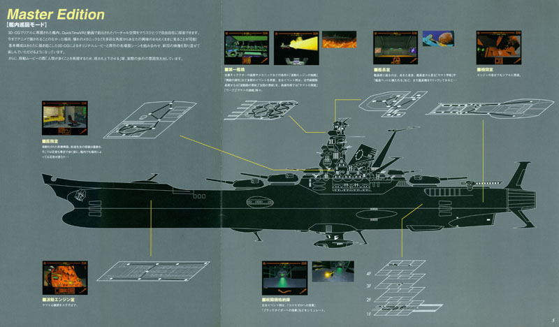 If you wanted to take a shortcut to a specific location, clicking on the Yamato image would take you here, to a wireframe model of the entire ship that can be rotated to bring the destination points into view. Clicking on one of them would take you there instantly.