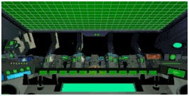 …you’re standing on the first bridge, ready to go in whatever direction you please. From here (and everywhere you go, for that matter) there are three options: tour the ship on foot using the position map at the bottom of the screen, tour the ship via shortcuts by clicking on the Yamato image at the lower right, or access the database by clicking the square icon ay the upper right.