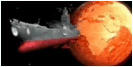 The first button opens up an interactive mission map. Clicking on the locations along the route takes the ship there, and a highly-compressed Quicktime movie in the lower left corner follows the path in virtual space.