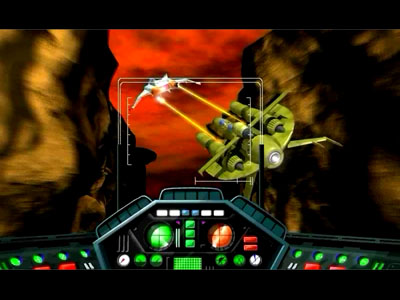 The first order of business upon arrival at Telezart is for the Cosmo Tigers to air-raid the Comet Empire’s base camp. Kato (Conroy) leads the squadron through a maze of ravines. Text pops up for you to type so that he can shoot down enemy fighters and tanks. If you make a mistake, his shot misses or another Tiger is hit. See the intro cutscene here.